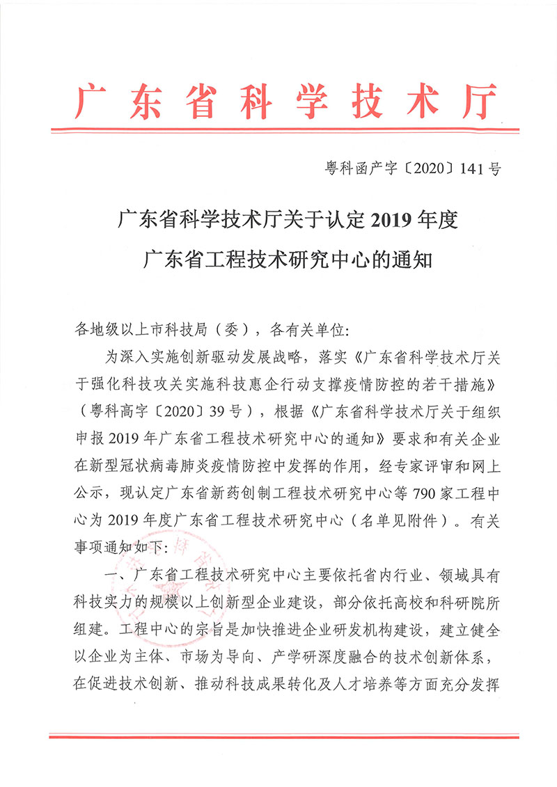 雷速机械制造有限公司于2019年认定为广东省工程技术研究中心